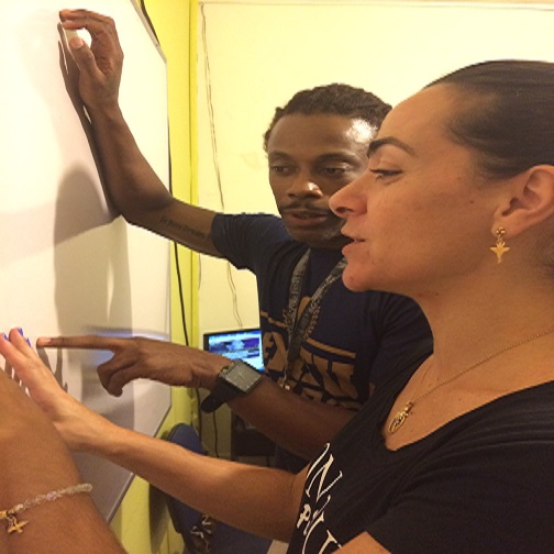 Virginia Martins is supporting Créo with rehearsals. She is an actress and theater teacher and she is know for Sitiados (2010), O Mural (2006), Avenida Brasil (2012).