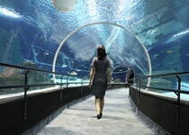 Uma das maiores atrações do AquaRio é o tanque principal, que conta com um túnel subaquático que corta aquário. É a experiência perfeita para você observar peixes, arraias e tubarões.