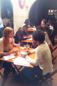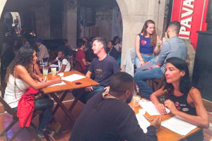 There are a lot of tourists in Rio e Janeiro – as well as Brazilians, of course. Therefore, we thought it would be nice to bring them all together and mix them during the Speed Dating. The event was the chance to easily meet a lot of people and was the perfect opportunity for those who are normally shyer to approach someone. People from all over the world attended the event, so there was enough to talk about since there were so many different cultures around! Over a hundred people showed up – the participants were a mix of students of Caminhos, local Brazilians, people staying at the Pura Vida Hostel and other friends.