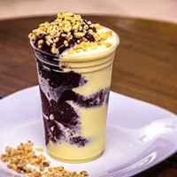 Common toppings include granola, powdered milk, chocolate chips, sweetened condensed milk, banana, strawberry, peanuts, and paçoca. Açaí can also be topped with different kinds of fruit syrup, caramel, and honey.