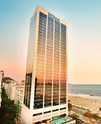 Opened in 1975, the Hilton Copacabana, formerly Le Méridien Copacabana, is a five-star luxury hotel in Rio de Janeiro. With 39 floors, it is still the tallest building in Copacabana. Because of its height, the hotel has one of the greatest views of any hotel in Rio, overviewing the ocean, the Sugarloaf Mountain, and the Christ the Redeemer Statue.