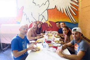 The heavy pavement pounding caused the hunger pains to kick in, so we swung into the humble kitchen of Tia Maria (Rio’s own culinary goddess who has also adopted 27 children in her lifetime). She provided our curious minds with some of Brazil’s humble culinary offerings such as farofa (toasted cassava flour mixture), feijão (black beans) and frango assado (roast chicken). In fact, a lot of Brazil’s national dishes originated in the favelas.